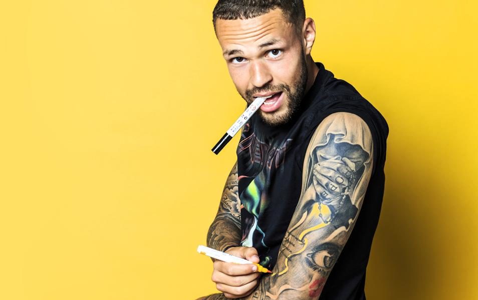 De tatoeages op zijn linker- en rechterarm vertolken een volledige biografie. Hier hebben alle dierbaren in zijn leven een plekje gekregen: zijn overleden oma en oom, echtgenote Phylicia, zoontje Luciano en ook Jezus Christus. “Ik heb ze laten zetten door de Mexicaanse tattookunstenaar Lallo, toen die even in Den Haag was. Het geloof is belangrijk voor me; mijn moeder is ook gelovig, maar ik ben zelf begonnen de bijbel te lezen. Het katholieke geloof geeft me hoop en kracht in goede en slechte tijden. Ik bid elke dag, bij het opstaan en het slapengaan en ook vóór een voetbalwedstrijd.”